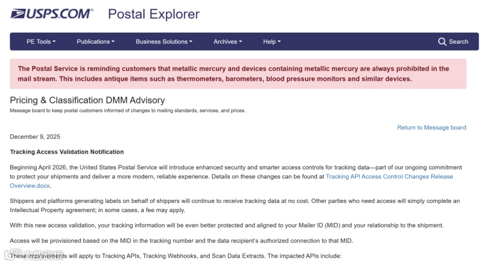 总体来看,USPS正式将物流轨迹查询机制从传统的开放查询模式,转向身份绑定加授权访问的模式。