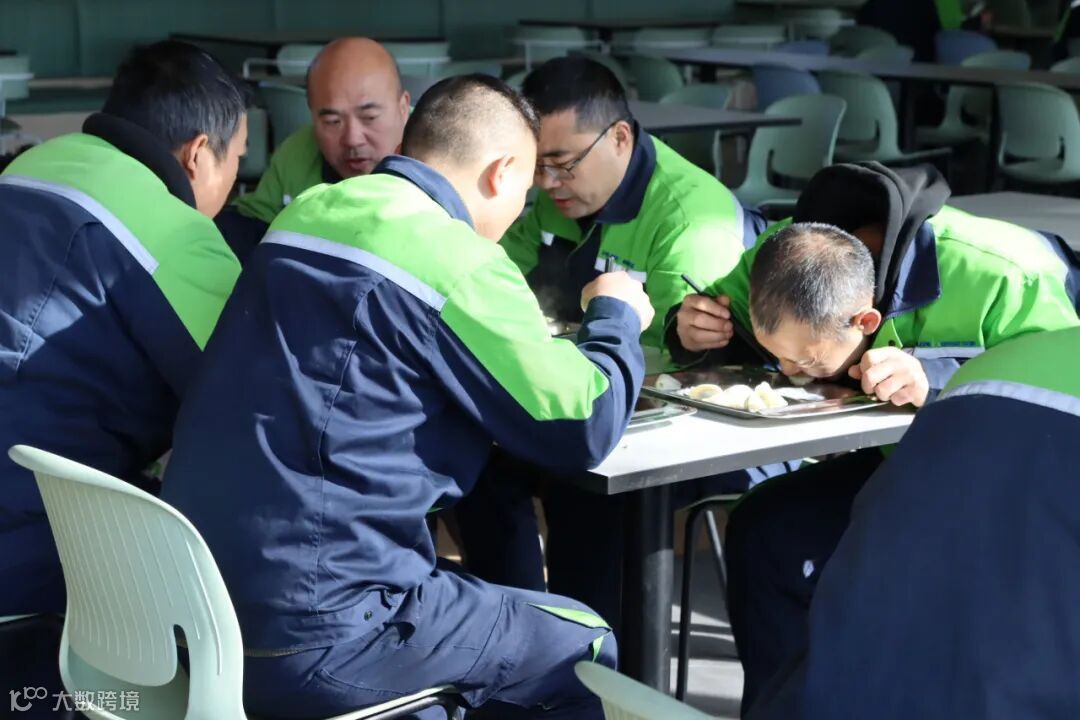 考虑到员工工作节奏,后厨工作人员严格把控料理时间,确保忙碌的技术骨干和一线员工都能及时吃上热乎饺子,在寒风凛冽的冬日为员工驱散寒意,尽显“舌尖上的关怀”。