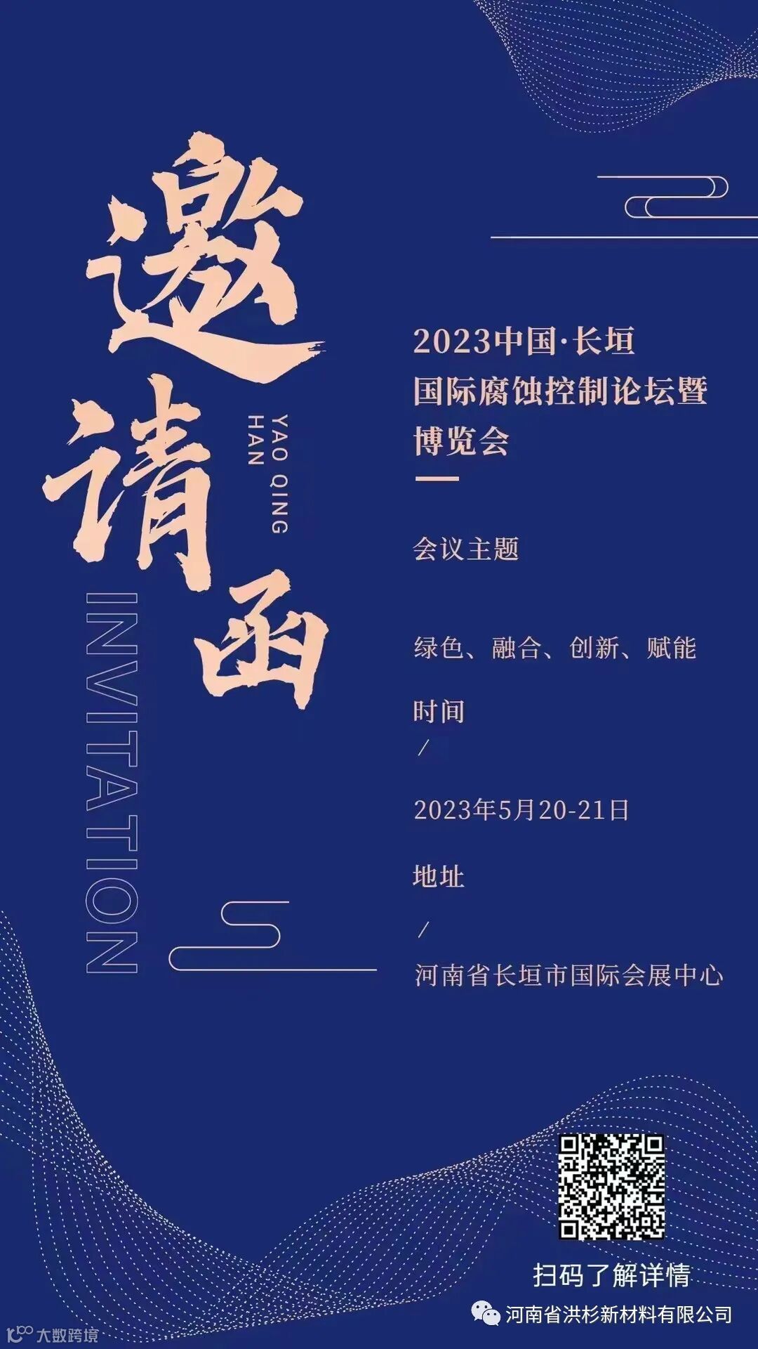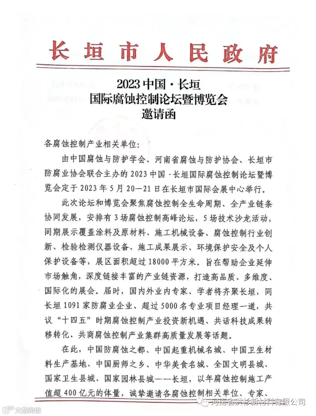 本届大会由中国腐蚀与防护学会、河南省腐蚀与防护协会、长垣市防腐业协会联合主办的2023中国·长垣国际腐蚀控制论坛暨博览会定于2023年5月20-21日在长垣市国际会展中心举行。诚挚邀请各腐蚀控制相关单位、专家、学者及各界专业人士参展参会交流,共品长垣美食,同赏长垣美景,共同探讨腐蚀控制产业的未来。
