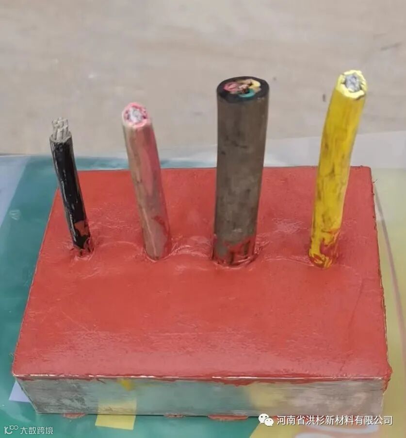 (4) 无机堵料浇筑后在其顶部使用有机堵料将每根电缆分隔包裹 , 其厚度大于无机堵料表层的10mm, 电缆周围的有机堵料宽度不得小于30mm,呈几何图形 , 面层平整。