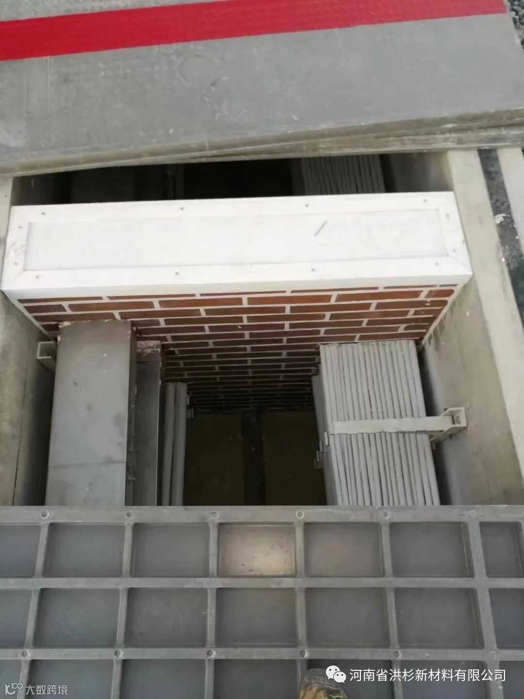 2.若用于有贯穿物孔洞,测量开口尺寸,根据孔洞形状切割符合的尺寸,或将提前预制好的模块砌筑。