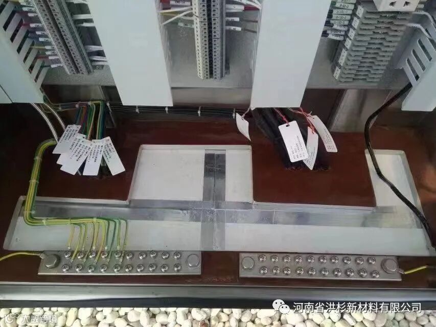 (4) 盘柜底部以10mm防火隔板进行封隔,隔板安装平整牢固,安装中造成的工艺缺口、缝隙使用有机堵料密实地嵌于孔隙中,并做线脚, 线脚厚度不小于10mm, 宽度不小于20mm, 电缆周围的有机堵料的宽度不小于40mm, 呈几何图形,面层平整。