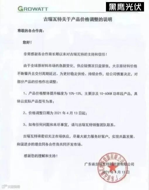 自2021年5月7日起,产品价格将继续进行调整,具体调整幅度将由销售人员沟通对接,所有未交订单将执行调整后的新价格。