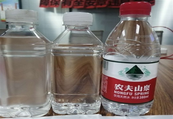 图为1号生物质溶剂油,2号二代生物柴油;右侧为比色用的矿泉水