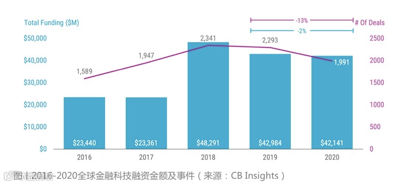 从地区分布来看,在相对较成熟的市场(如美国、亚洲、欧洲)中,融资活动逐渐趋于冷静;而在新兴市场,如南美洲、非洲、大洋洲,融资活跃度势头上扬。其中,美国和中国是表现最为抢眼的两个国家。尤其是,中国金融科技企业在推出数量上表现亮眼:2017 年以来,总部位于中国的 15 家估值超过 10 亿美元的金融科技公司通过 IPO 或并购交易退出,其中包括众安保险(2017 年)、趣店(2017 年)、富途(2019 年),以及 2020 年纽交所挂牌的陆金所。从行业分布来看,支付、保险科技、财富管理最受投资市场青睐。其中,支付吸引了金融科技投资者最多的兴趣,借贷也一直保持热度。