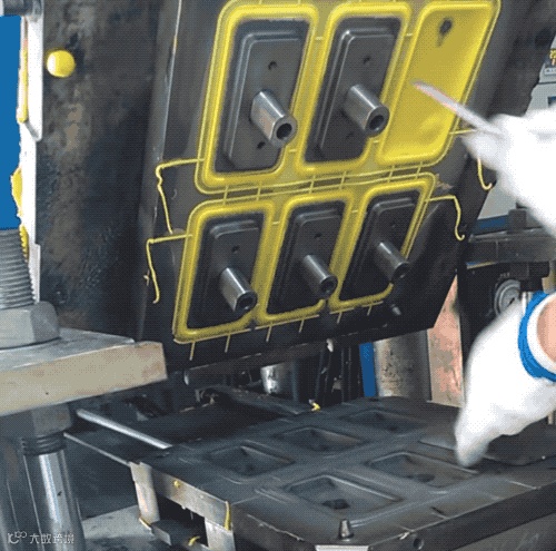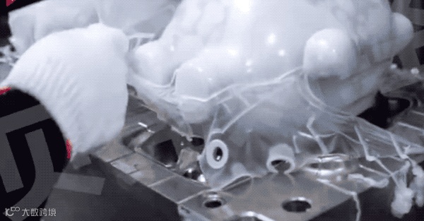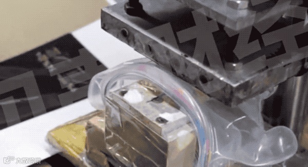 设定好所需的温度、压力、时间等参数,然后硅胶油压成型机给硅胶加压硫化,时间一到,固态硅胶会软化再固化,成为手机套的形状了~工人手里从硅胶壳上抠下来又塞到底部的模具,是用来充当手机壳的型芯。