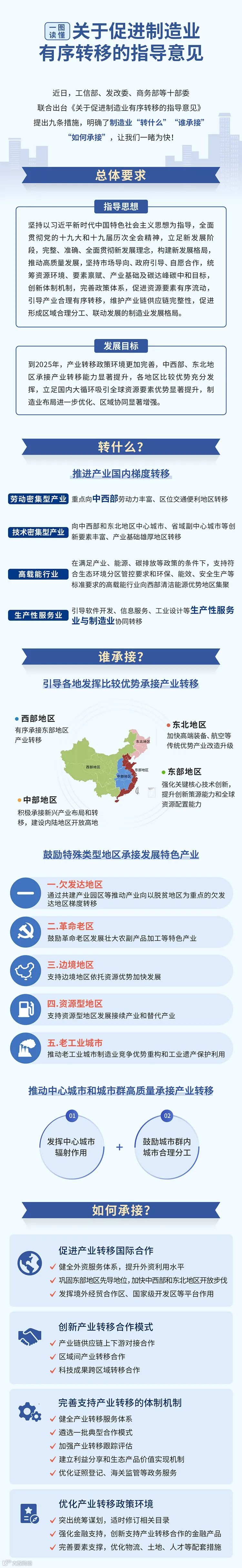 导读:一图读懂《关于促进制造业有序转移的指导意见》