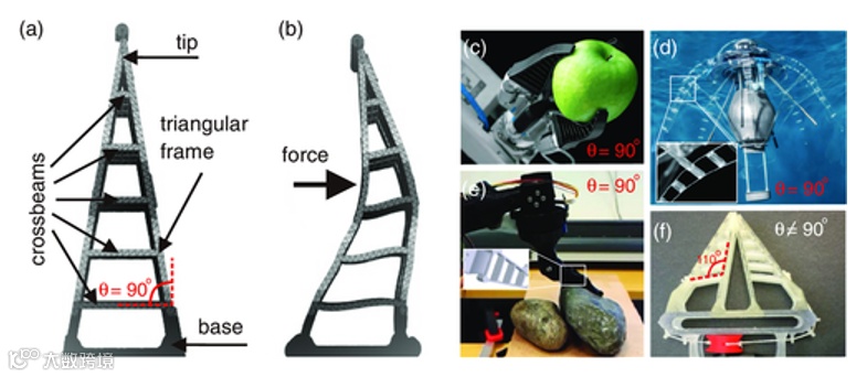 而现在,这项技术取得了最新突破! 来自五个国家的科学家仅通过调整横向骨架的角度,将该结构应用在机器人的脚上,大大的改善了机器人“手”和“脚”的抓取或抓地性能!