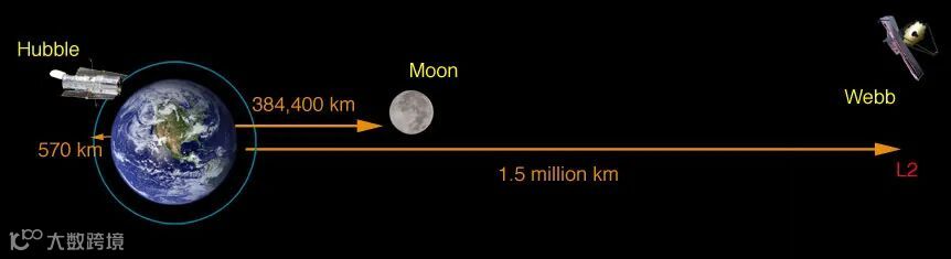 韦伯望远镜将在距离地球150万公里的日地拉格朗日L2点(太阳和地球之间的引力平衡点)绕太阳运行。比起在570公里轨道高度绕地球运行的哈勃望远镜,它需要保持极低的工作温度、稳定的指向和更高的观测效率。