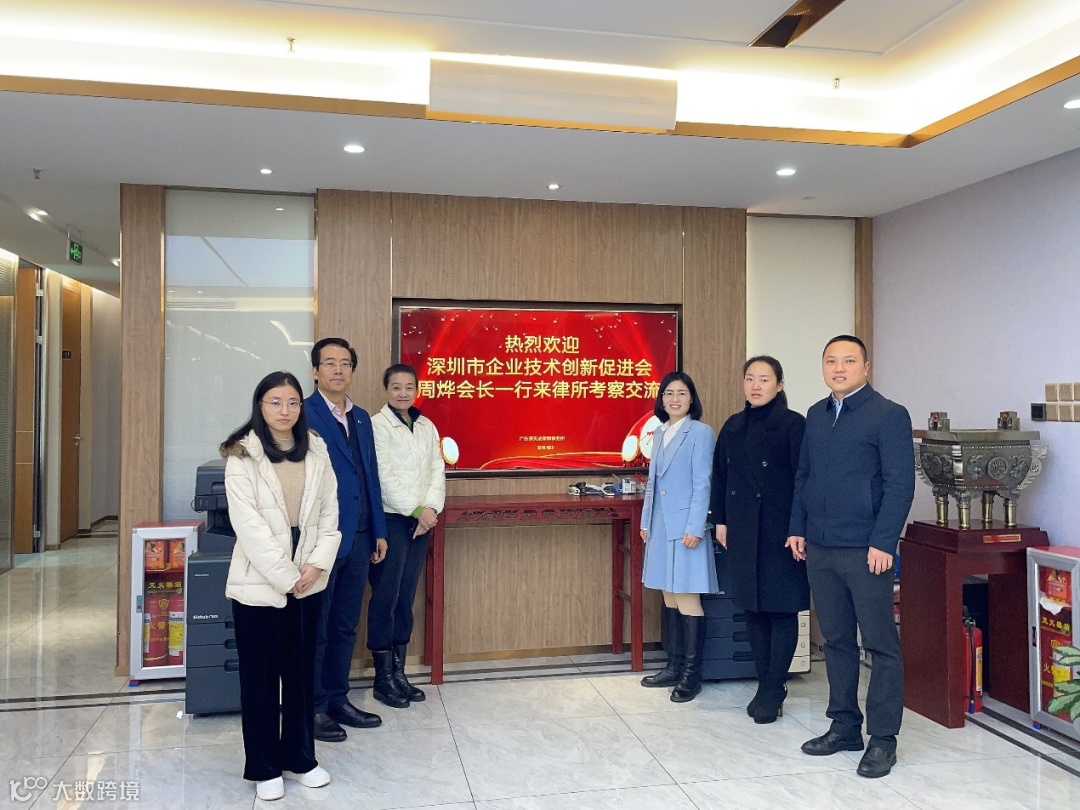 2024年1月24日,深圳市企业技术创新促进会执行会长周烨女士、秘书甘金慧女士到广东深天成律师事务所座谈交流,广东深天成律师事务所副主任、高级合伙人单新凤律师,高级合伙人彭商翁律师,知识产权专业委员会代表何苏律师、王湘湘律师接待并座谈。本次座谈活动由单新凤律师主持。