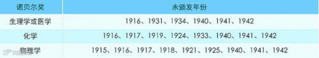 表2.诺贝尔奖未颁发年份