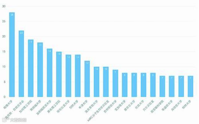 从国家分布来看,获奖机构基本集中在欧美国家,其中美国占比超过50%,值得注意的是,日本在榜单中表现不俗,取得第6名的成绩。