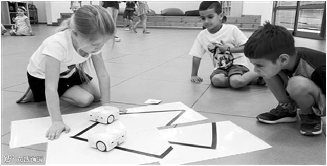 在机器人课堂上,孩子们在叶尔莉老师的指导下,改变机器人运行模式,让它沿黑线行走、循声转向、跟随绿色物体前进、遇见红色物体停止或后退。孩子们通过按钮选择小机器人的运动模式,了解不同模式下其运动特性,激发他们对机器人的兴趣。