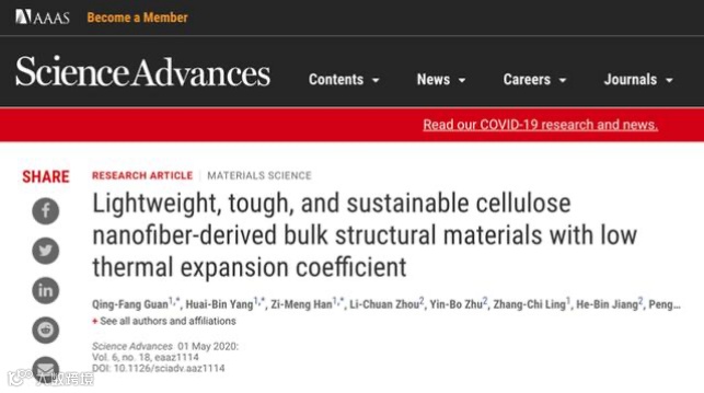 众所周知,任何事物都有其两面性。塑料自从在人类生活中广泛使用后,虽然给人们带来了许多便利,但同时也变成生活中最常见的垃圾,重要的是“白色污染”日益严重,科学家们一直以来都在寻找一种新型的环保的材料代替塑料。功夫不负有心人,中国科学技术大学的团队在Science Advances 杂志上发表一份研究论文,报告了一种名叫纤维素纳米纤维板(CNFP)的高性能结构材料,未来很有可能取代塑料。