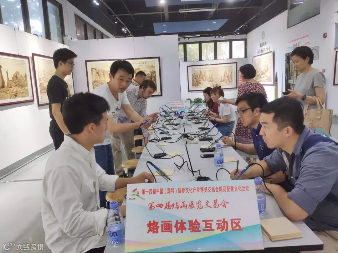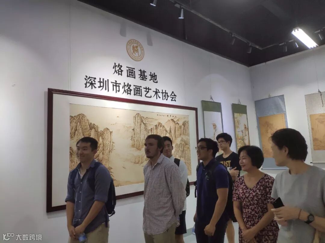 下午,一行到达位于光明新区招商局科技园的烙画基地。烙画又称烫画,火笔 画,中国传统艺术珍品,用火烧热烙铁在物体上熨出烙痕作画。烙画不仅有中国画的勾、勒、点、染、擦、白 描等手法,还可以烫出丰富的层次与色调,具有较强的立体感,酷似棕色素描和石版画,因此烙画既能保持传统绘画的民族风格,又可达到西洋画严谨的写实效果,使其具有独特的艺术魅力。张守福会长亲自接待,带领大家参观展品并让青年们动手体验制作烙画。这让来自美国的青年们体验了一把中国传统文化的熏陶。