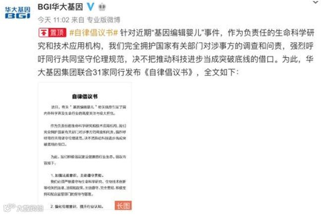 作为负责任的生命科学研究和技术应用机构,我们完全拥护国家有关部门对涉事方的调查和问责,强烈呼吁同行共同坚守伦理规范,决不把推动科技进步当成突破底线的借口。