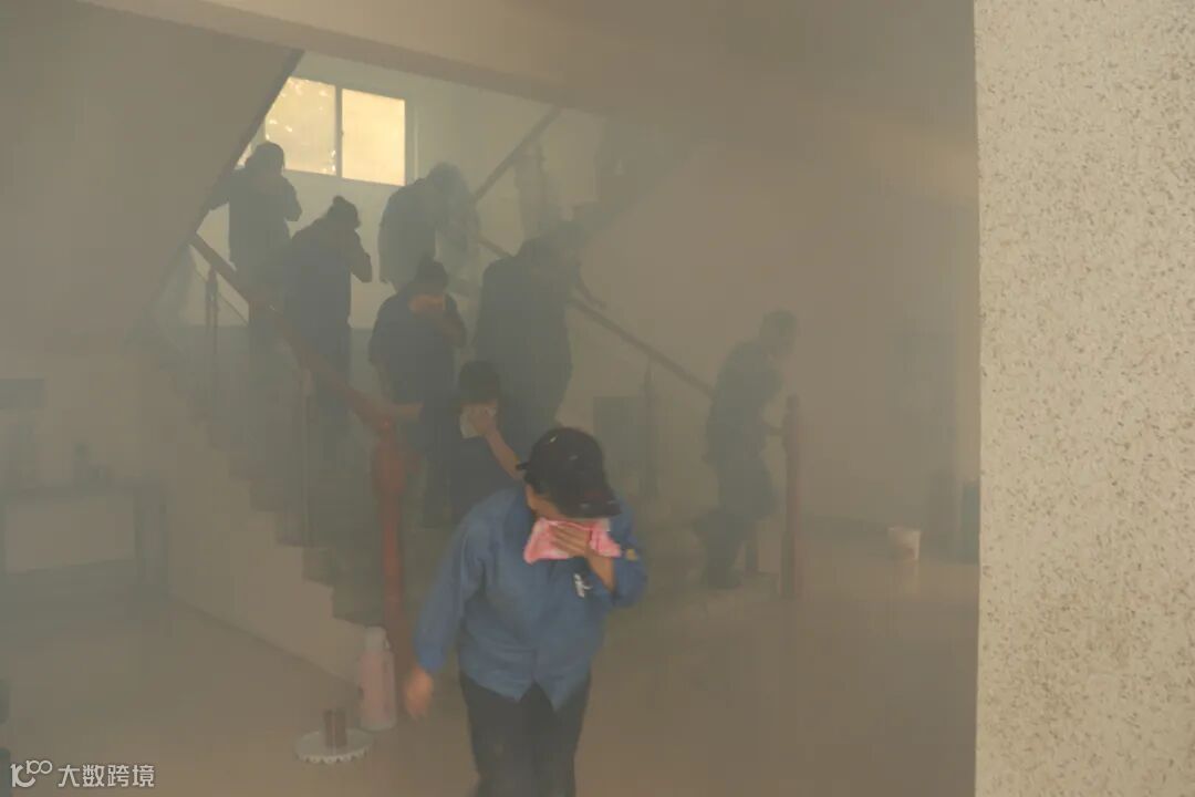 随后,为突显火灾现场的真实感,在办公区点燃烟雾弹,公司全体员工在姜教官的指导下开始消防实战演练,每位员工用湿毛巾捂住口鼻,低头有序从4楼培训室逃生至办公楼前紧急疏散集合点。在演练过程中,姜教官手把手教大家使用灭火器,并强调,遇到火情时,不要慌张,找准火焰的上风口,手持灭火器,对准火焰根部,快速扑灭火焰。员工们积极参与,充分掌握灭火器的使用方法,纷纷上阵演练,顺利扑灭模拟火点,完成演练。