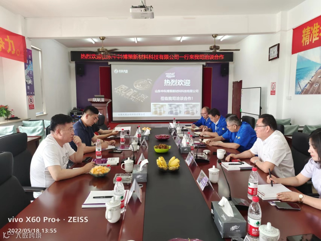 下午13:50在我司会议室召开了愉快诚恳的洽谈会议,总经理李学金先生代表公司,首先致二位领导百忙之中莅临我司考察洽谈合作,表示热烈欢迎和衷心感谢。在座谈会上,公司总经理李学金先生首先介绍了凤凰涂料公司的基本发展历程:从专业项目、课题、产品对接和公司在行业中发展历程与长远愿景,作了介绍、描述。力求通过优良的品质、诚信、务实、富有经验和同行领军的中科博策建立长期合作之设想,进行了阐述说明。