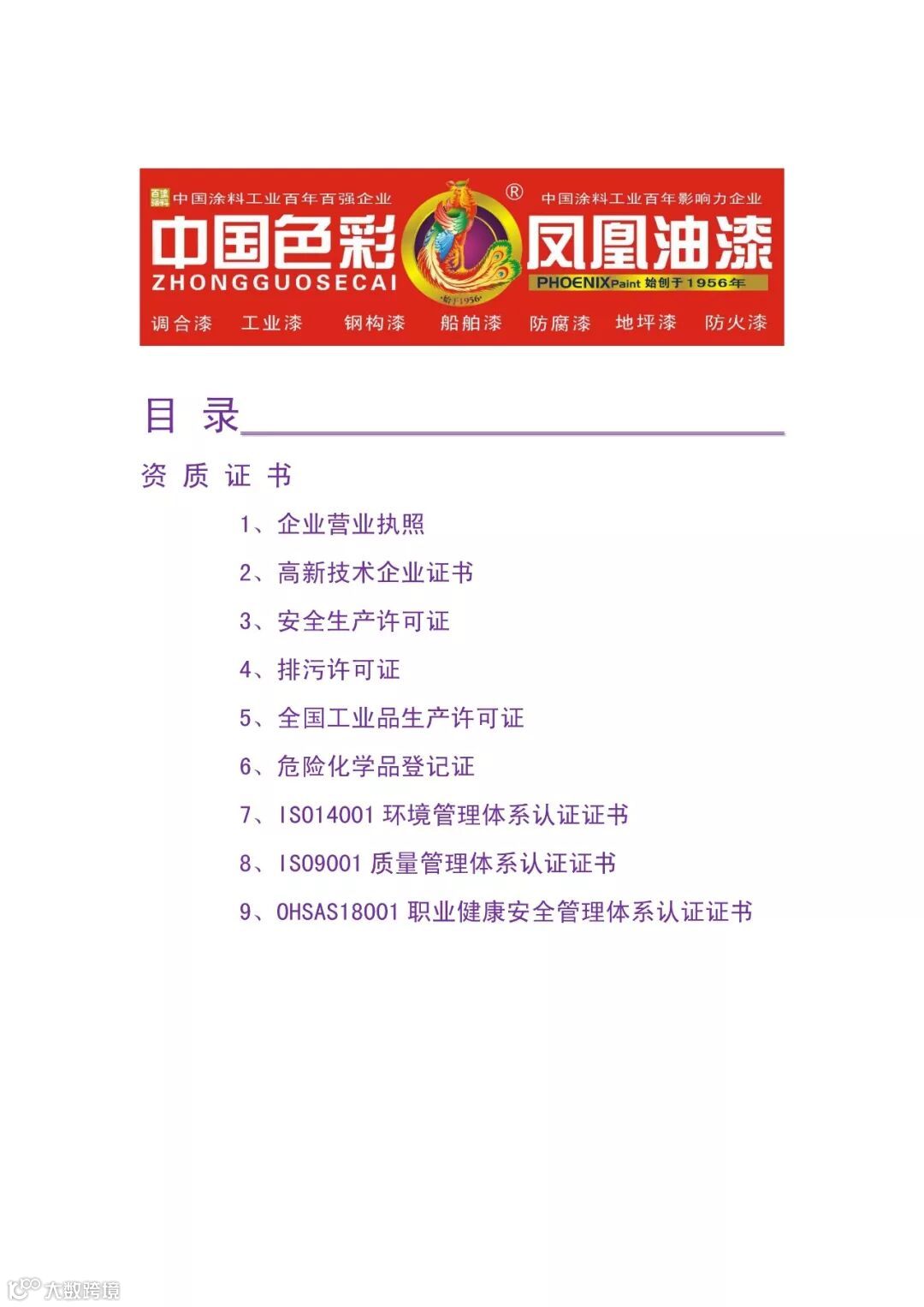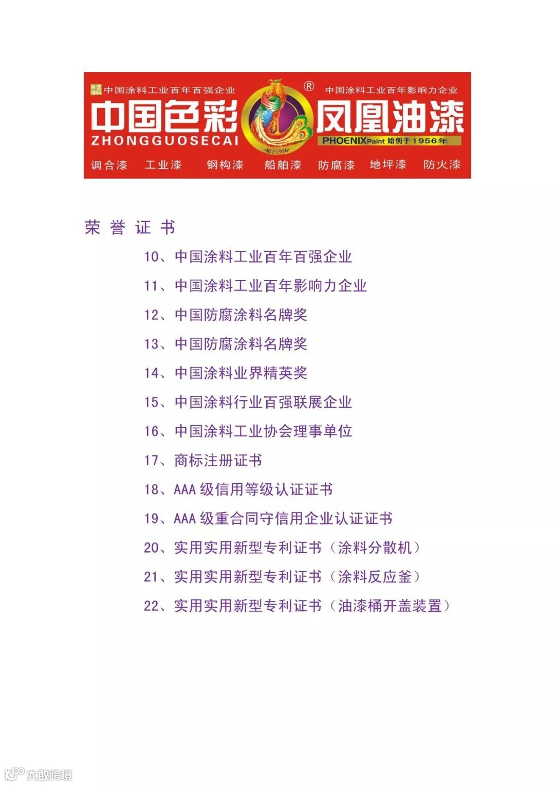 凤凰涂料荣誉资质汇编电子版(请全国经销商惠存)