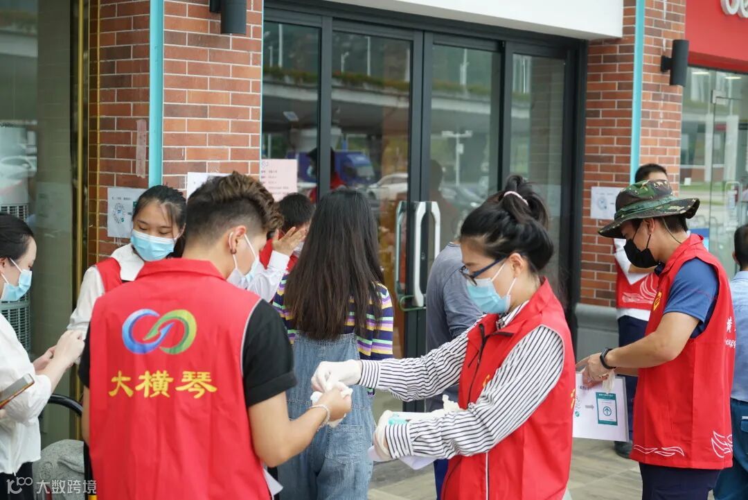 8月3日,珠海市通报2名澳门来珠人员核酸呈阳性,通报中指出本次新冠感染者活动范围广,途径珠海、中山多地,珠海市政府第一时间做出反应,核查其在珠海的轨迹,并对机场、口岸等重点场所及人员进行排查和分类管控,珠海市再度启动全市核酸。一线防疫形势严峻,工作量大,多个核酸检测点急需志愿者,珠海大横琴城市建设有限公司(下称“大横琴城建”)秉持社会责任心,自发组织多名志愿者再度奔赴一线支援。