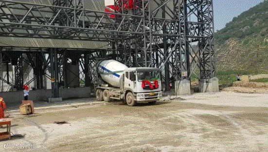 图:搅拌车装料驶离搅拌楼