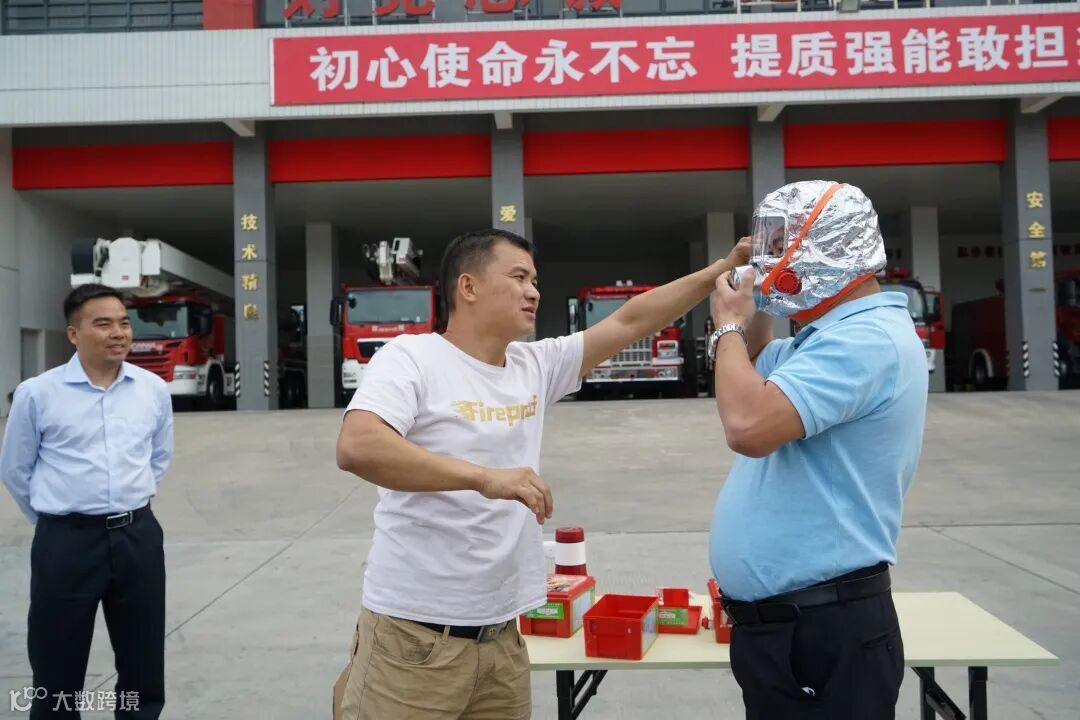 随后,大家来到训练场地观摩消防队员高空攀爬演练,并交流相关技能。消防队员现场教授、指导大家学习逃生绳索的打结方法、消防水带、空气呼吸器及灭火器械的正确使用方法和注意事项。