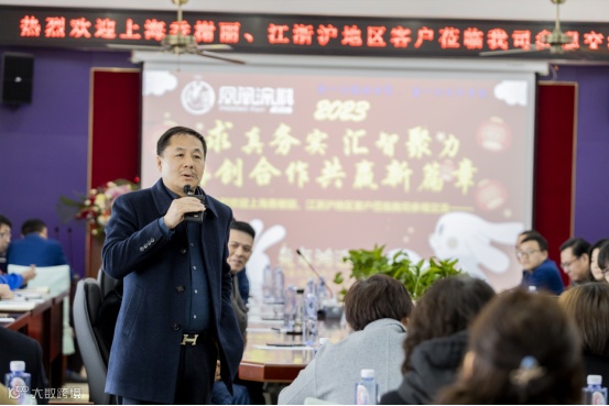凤凰公司总经理李学金先生热情洋溢的对公司的发展历程“前世今生”、未来公司的发展方向、市场布局、产品发展作出了生动而又全面详细的发言,凤凰公司始终把“求真务实”作为全体员工的工作作风,2023年,相信在董事长的领导下,有各位的加入,通过“汇智聚力,深度合作”,一定能“再创合作共赢新篇章”。