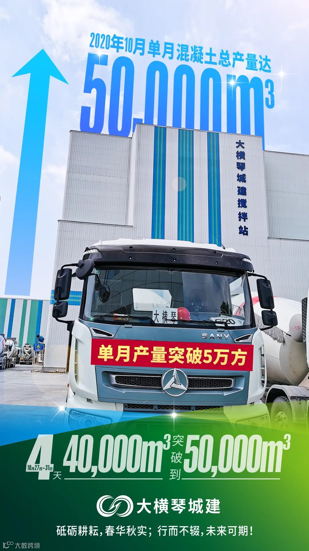 喜讯|祝贺大横琴城建搅拌站10月单月产量突破5万方!