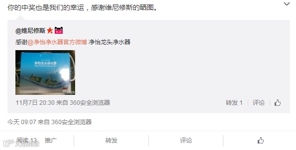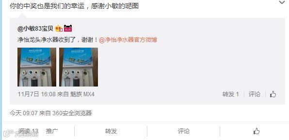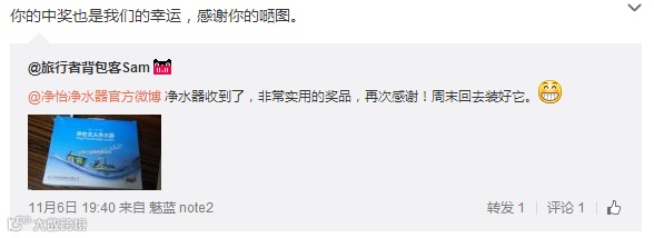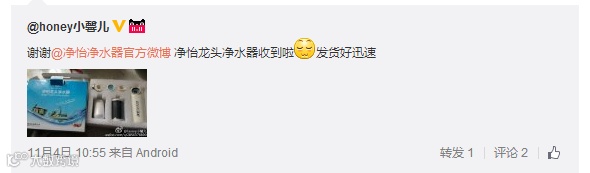 导读:净怡10月份转发微博活动开奖咯!具体获奖名单如下:本次活动净怡共送10台龙头净水器。备货就是那么迅速。部分获
