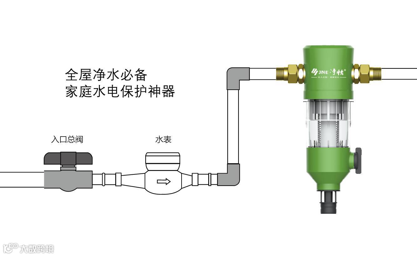 前置过滤器,也被称作水路保护器,一般在装修时便会安装。前置过滤器属于总管道水质净化产品,是一种杂质过滤装置,可过滤40-120微米的颗粒杂质,使水质恢复到自来水厂出厂时标准。它通常安装在水表之后到家里第一个出水龙头之前的任何一处外露水管,对水管和安装在水管上的涉水设备,如净水器、洗衣机、饮水机或热水器等起到积极的预保护作用。