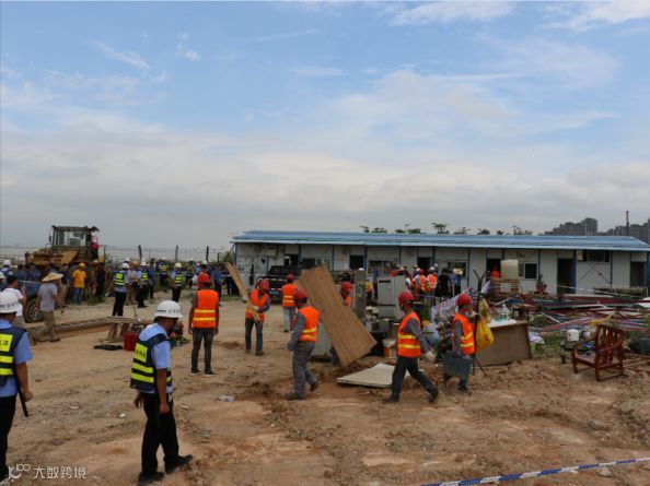经前期积极准备部署,区综合执法局于6月17日牵头开展了对三源社码头的拆除专项联合行动。此次行动得到区检察院、区廉政办、区规划国土局、区建设环保局、区社会事务局、市公安局横琴分局、中国海监广东省总队横琴大队、市交通执法局港航大队、横琴供电所、横琴公证处,大横琴城资公司、大横琴蓝湾公司及我司的全力支持与配合,各部门共出动执法及工作人员150人次、各类车辆23辆次。