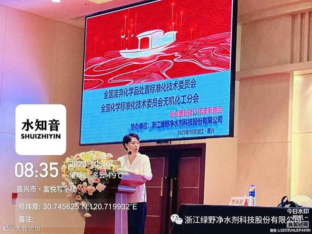 本次会议由全国废弃化学品处置标准化技术委员会、全国化学标准化技术委员会无机化工分会承办,浙江绿野净水剂科技股份有限公司协办。浙江绿野净水剂科技股份有限公司董事长俞明华女士作为废弃化学品标委会委员参加本次会议。