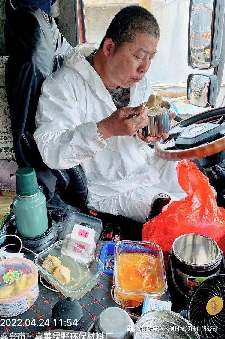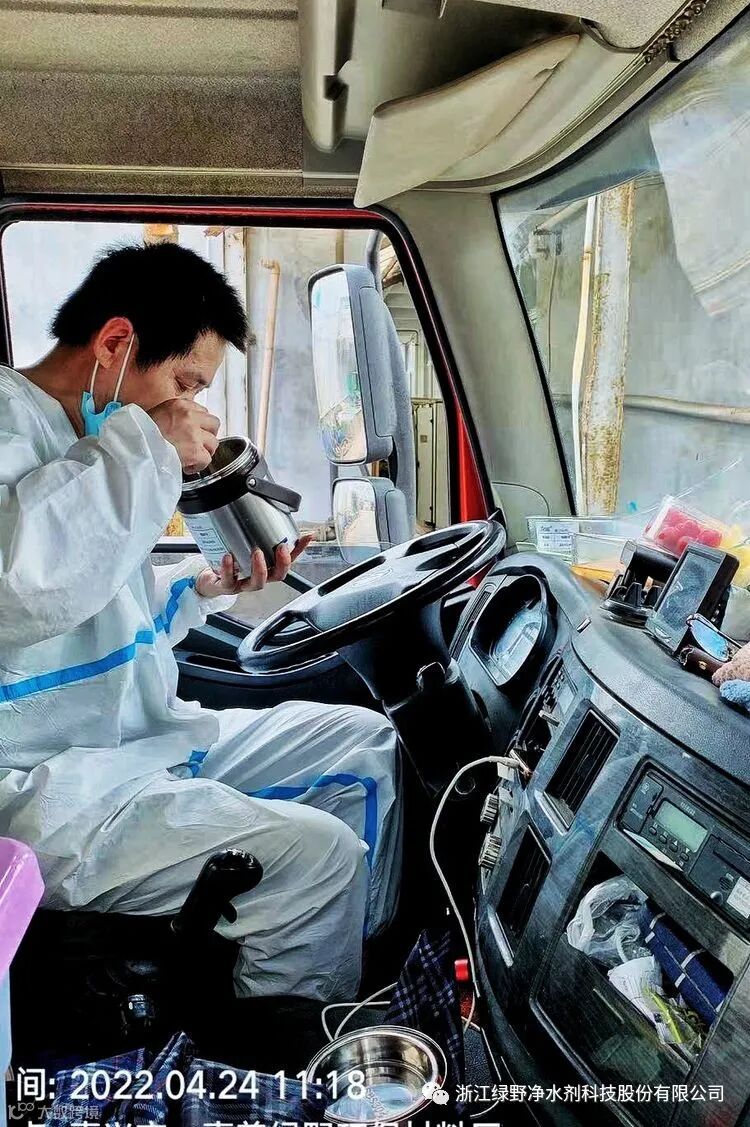 特别是为了保证上海地区水厂用药剂的供应,厂里的运输部门和罐车司机一直在驾驶室里“闭环”管理。公司装货和到水厂卸车驾驶员不下车。回到浙江不能回家,当地的“隔离酒店”都不敢“接受住宿”,只能吃住全在车上。