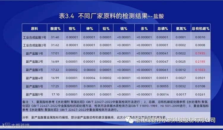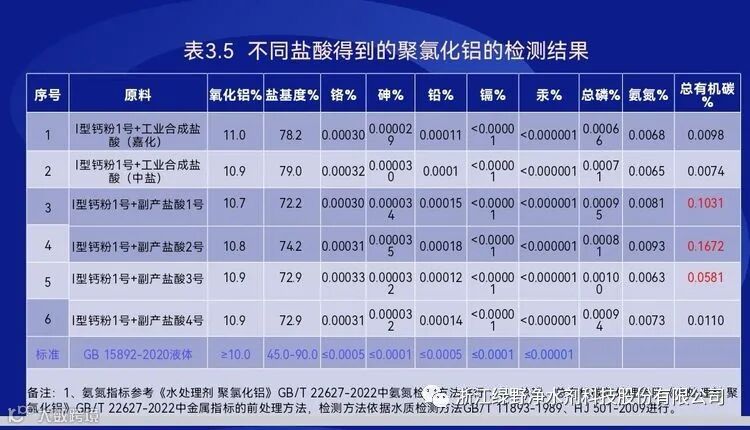 不同盐酸生产聚氯化铝产品的检测结果