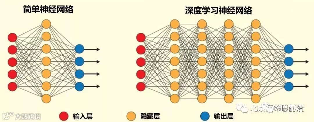 深度学习(Deep Learning)是机器学习的分支,是一种基于对数据进行表征学习的算法。通过基于大数据集训练网络,使其神经网络具有许多“深度”层,从而使创建的模型可对输入数据进行精确预测。深度学习的好处是用非监督式或半监督式的特征学习和分层特征提取高效算法来替代手工获取特征(见图6)。