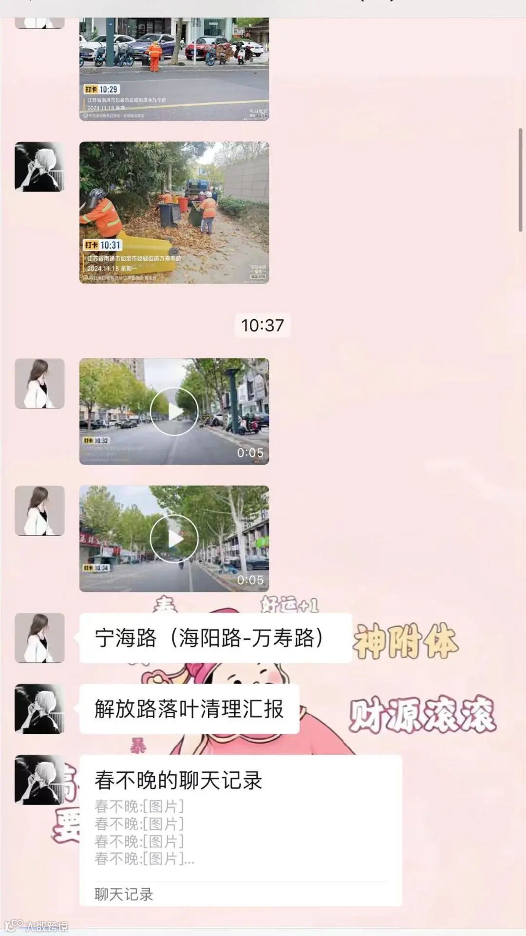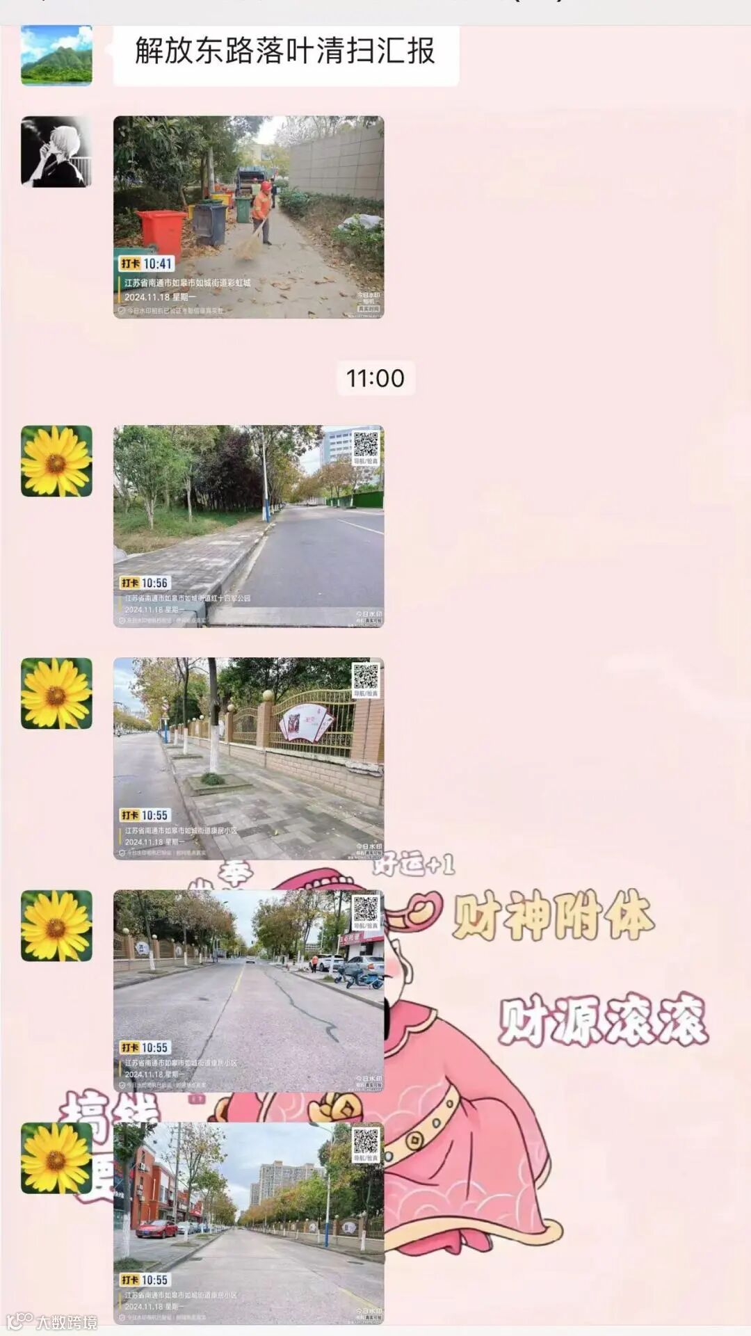 群内随时汇报落叶清理情况