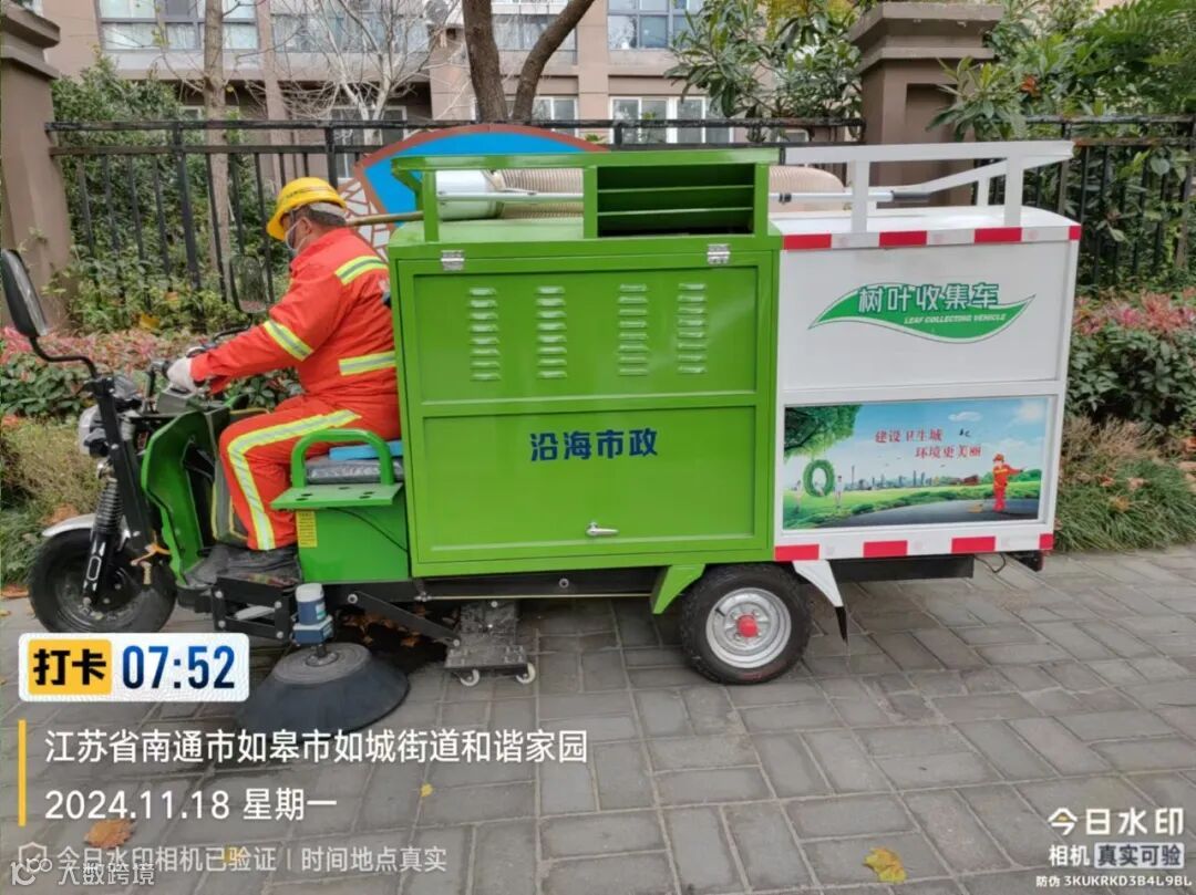 气温骤降,寒风来袭,落叶飘落铺满街道,为这座城市增添不少浪漫的诗意,但也为环卫工人增加了作业难度。沿海市政根据气候特点及工作实际,提前安排、科学部署,多措并举推进落叶清扫工作,增加清扫落叶的频率,聚力营造干净整洁的城市环境。