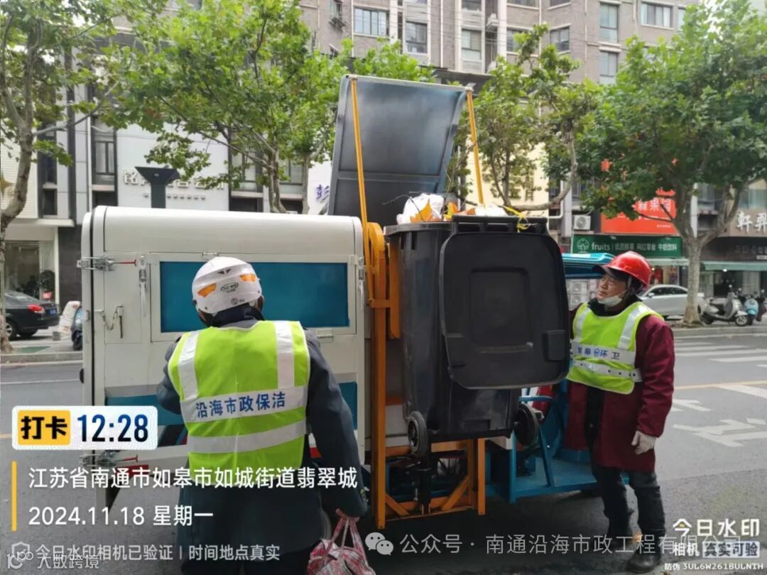 针对落叶季节的特点,沿海市政全面部署,合理调度清扫车辆、垃圾收运车辆等,采取“冲、扫、洗”机械联合作业模式,加强机械化洗扫作业频次,高效开展道路保洁作业;同时,根据现场情况积极改进清扫方式,对城区多条道路采取“随落、随扫、随运”的方式进行普扫,对机械作业无法到达的区域实行人工精细化清扫、冲洗,有效抑制了道路扬尘污染,并对落叶集中路段开展巡回收集、及时清运至垃圾中转站,避免出现道路落叶堆积、收运不及时的现象。