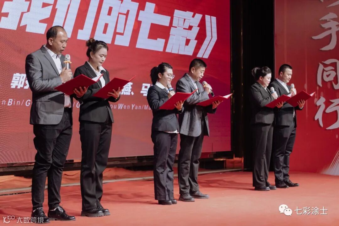 庆典中期,七彩涂士员工通过诗朗诵《我们的七彩》,表达了对公司的热爱及发展历程的感叹,同事更抒发了作为七彩人的自豪与自信。