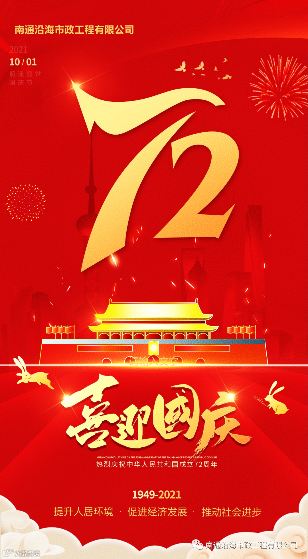 沿海市政人祝愿祖国神州奋起,繁荣昌盛,岁月峥嵘,江山不老!