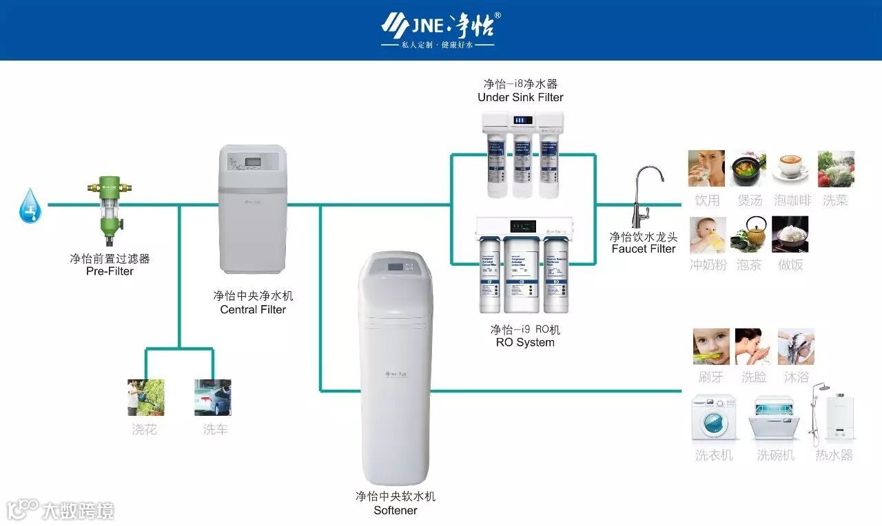全屋净化它包括了我们提到的终端净水机、中央净水机、前置过滤器、中央软水机、即热式管线机。