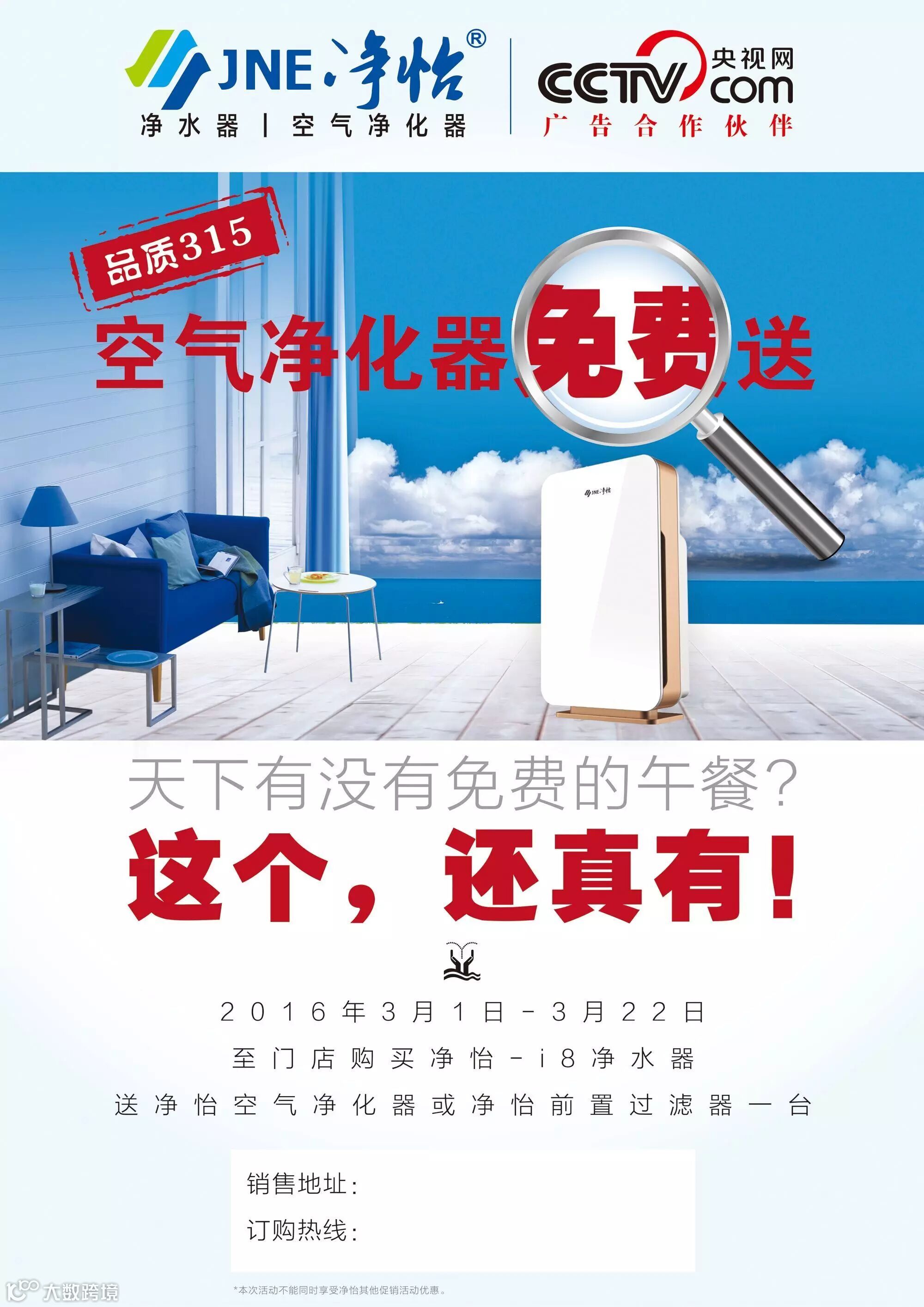 净怡净水器开年大促销,买一送一,全国500城20000台空气净化器5000万豪华大礼疯狂送!