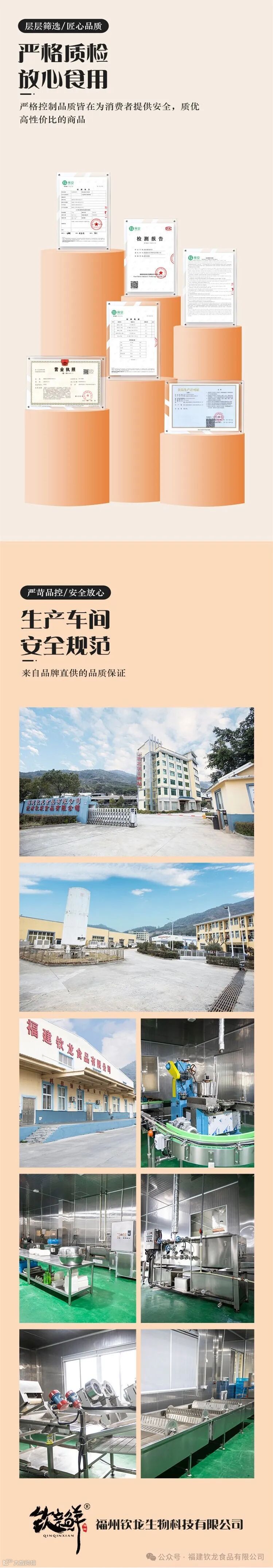 福建钦龙食品有限公司创建于2010年8月,位处福建省霞浦县三沙镇小皓村西山,紧邻国台办在我国大陆首家批准设立的霞浦台湾水产品集散中心和国家级三沙中心渔港,是一家具有进出口自营权的国家级农业产业化重点龙头企业。其主营水产品加工出口、冷冻冷藏等业务,主要加工生产鱼糜、鱼柳、鱿鱼、金枪鱼、大黄鱼及其他的海捕鱼系列产品,自创有中国驰名商标1个,福建名牌产品2个,且90%产品出口俄罗斯、欧洲、北美及东南亚、台湾、香港等十几个国家和地区。