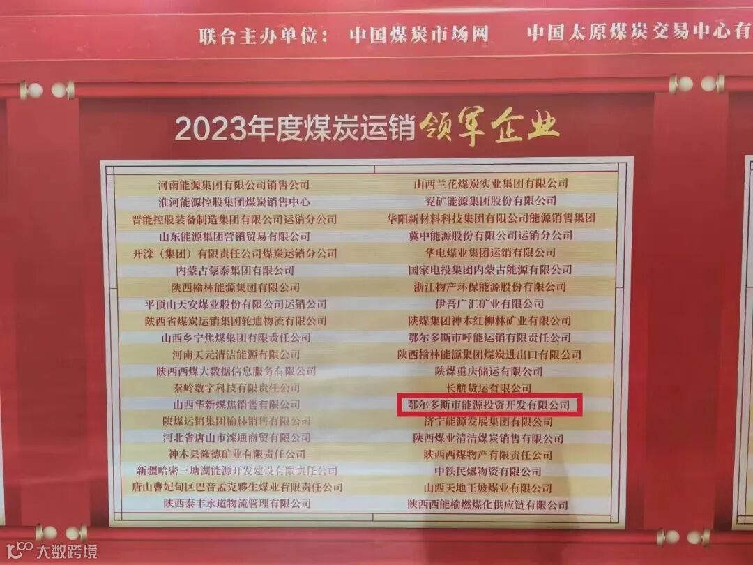 12月5日,全国煤炭交易会在唐山举行,期间CCTD煤炭运销系列品牌榜活动组委会评选了2023年度在煤炭运销领域表现卓越、成绩突出的企业和个人。能源公司被评为“2023年度煤炭运销领军企业”,能源公司董事长席剑凤荣获“2023年度煤炭运销领军人物”荣誉称号。