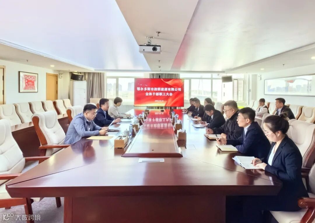 4月16日,鄂尔多斯市政联能源公司召开全体干部职工大会,宣布关于政联公司领导干部的任命决定。会议由市国投集团副总经理杨光荣主持,政联公司全体干部职工参加会议。
