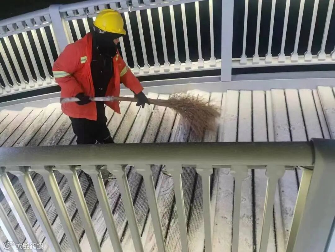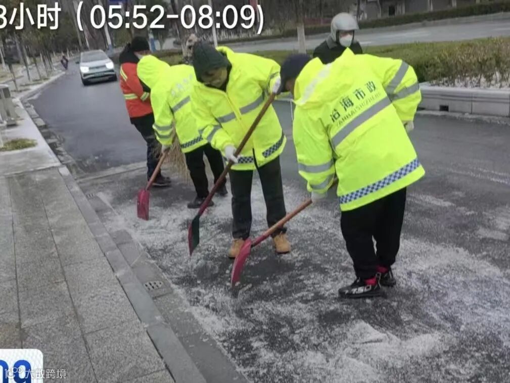 他们不畏低温全力奋战,管好自己责任区的清扫保洁任务。