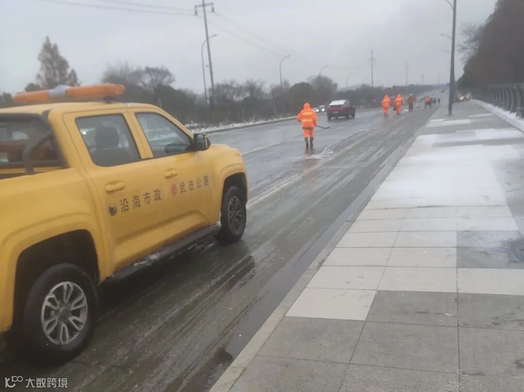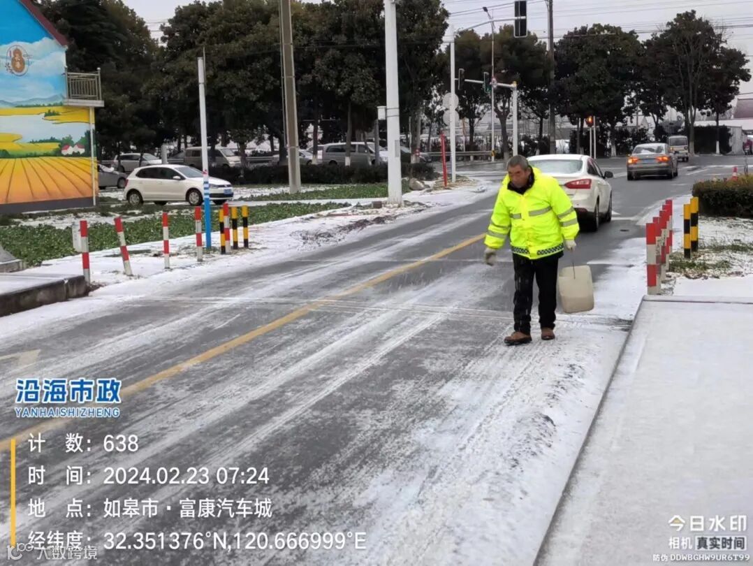2月22日下午,大雪突袭,沿海市政以雪为令,紧急启动除雪防冻应急预案,全力以赴开展铲雪除冰行动,切实保障人民群众的安全出行以及道路的畅通。