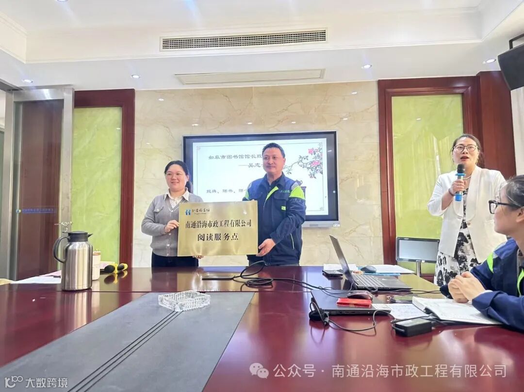 随后举行的授牌仪式上,大风拍打窗户的声音仿佛为"南通沿海市政工程有限公司阅读服务点"的铜牌揭幕奏响天然序曲。