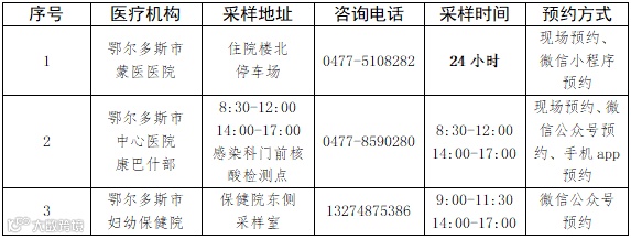 【温馨提示】最新!康巴什区核酸采样点有变化→