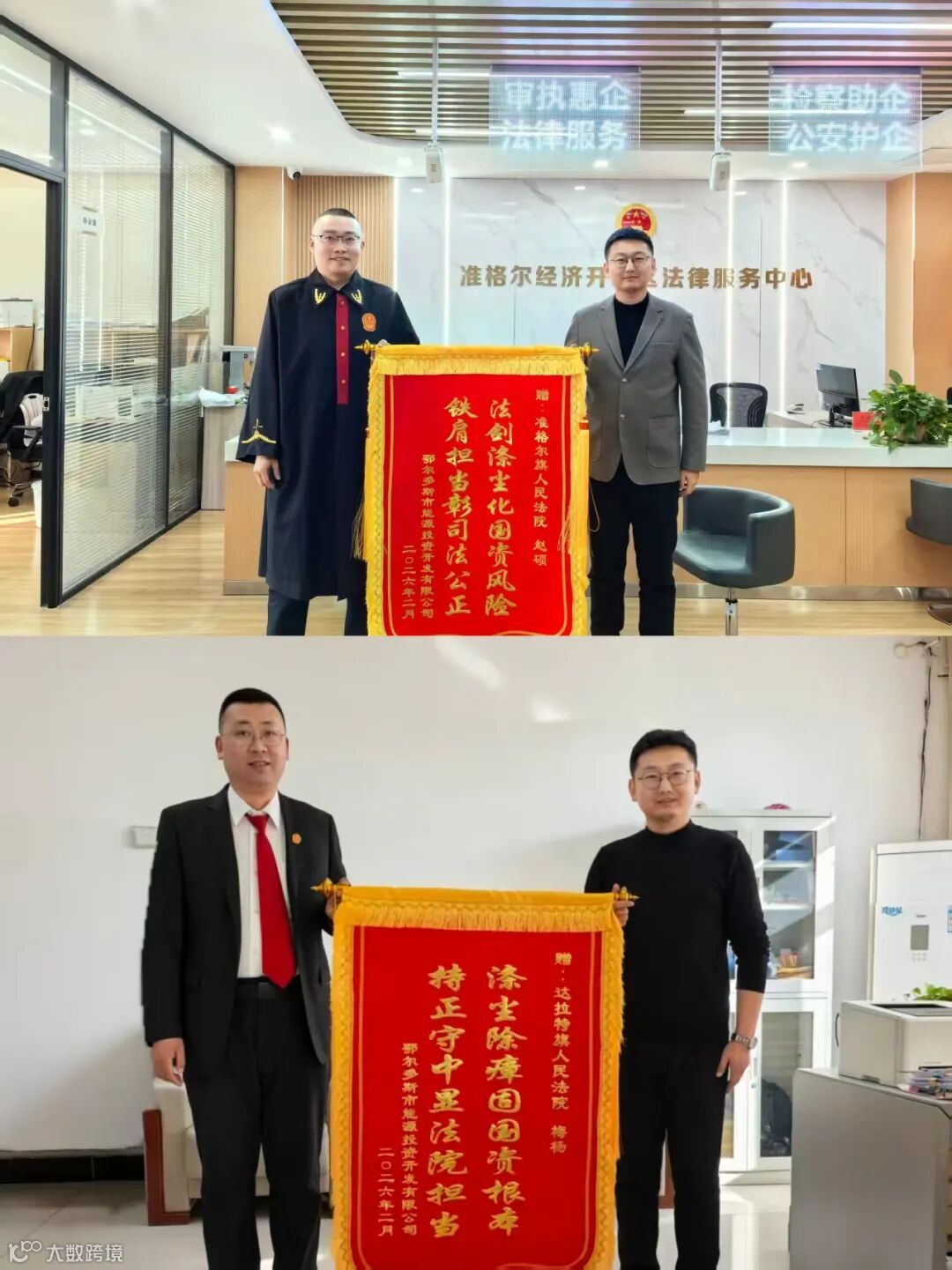 2月26日,为感谢两地法院高效审结案件、妥善化解股权争议,能源公司分别向达拉特旗和准格尔旗人民法院赠送锦旗。此举不仅体现了企业对司法机关依法裁判、服务大局的充分肯定,也标志着能源公司四级企业专项整治工作圆满收官。